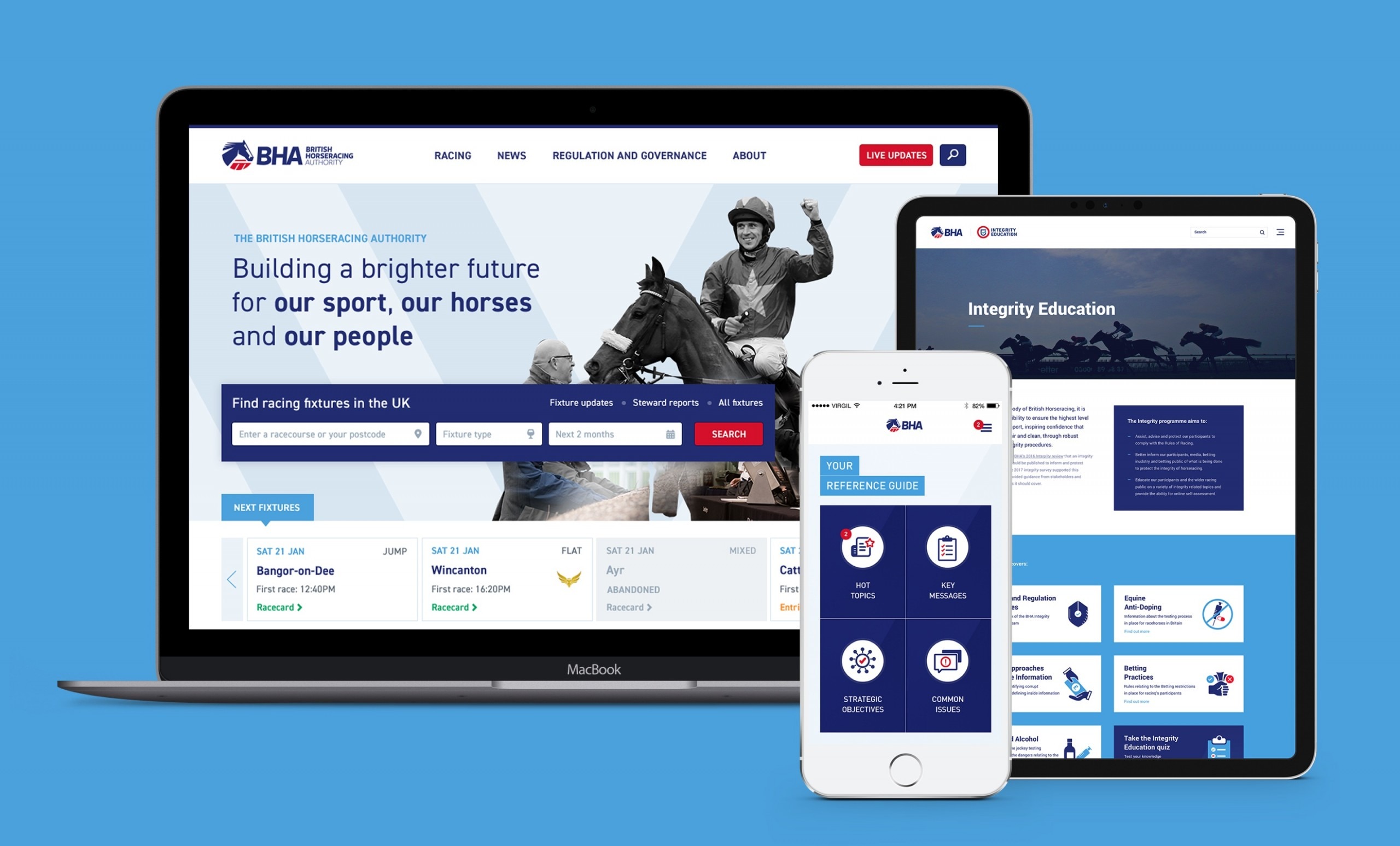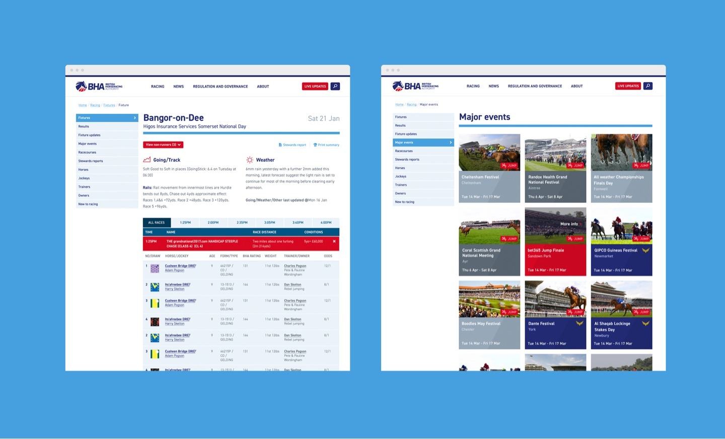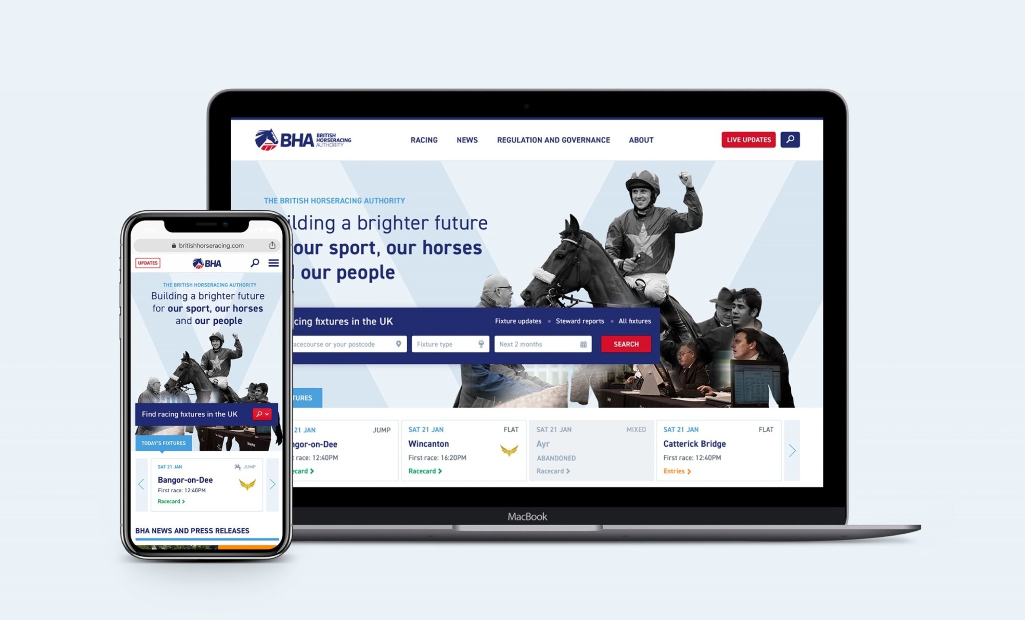 BHA came to us with a challenge, to redesign their website to become simpler and more user-friendly, following feedback gathered from the public. We came on board creating a refreshed user experience and interface design, placing the user at the heart of the design process. The new look is more clean and contemporary and improvements to the navigation make it much easier to find key information for the public as well as the racing industry and participants.
